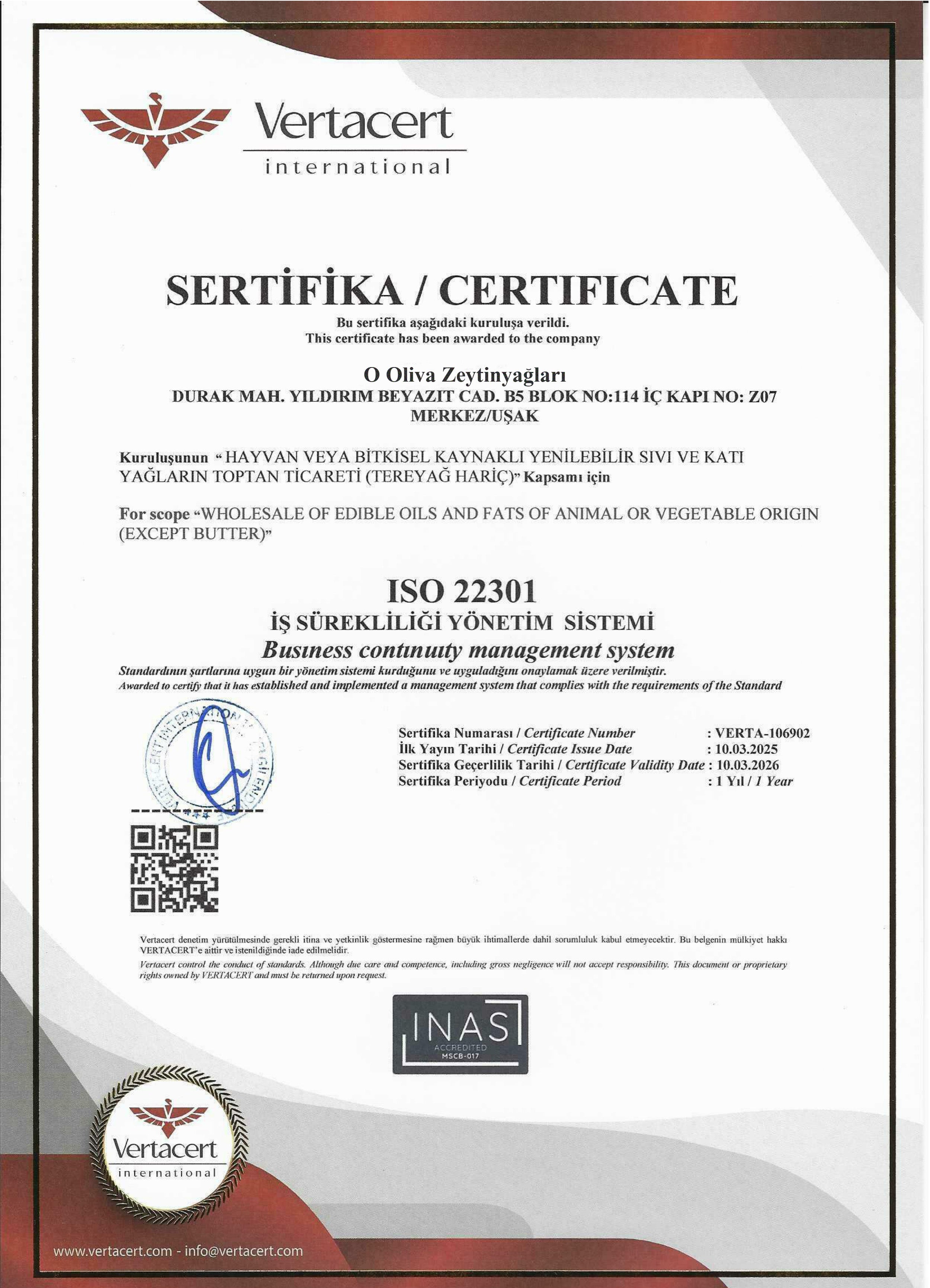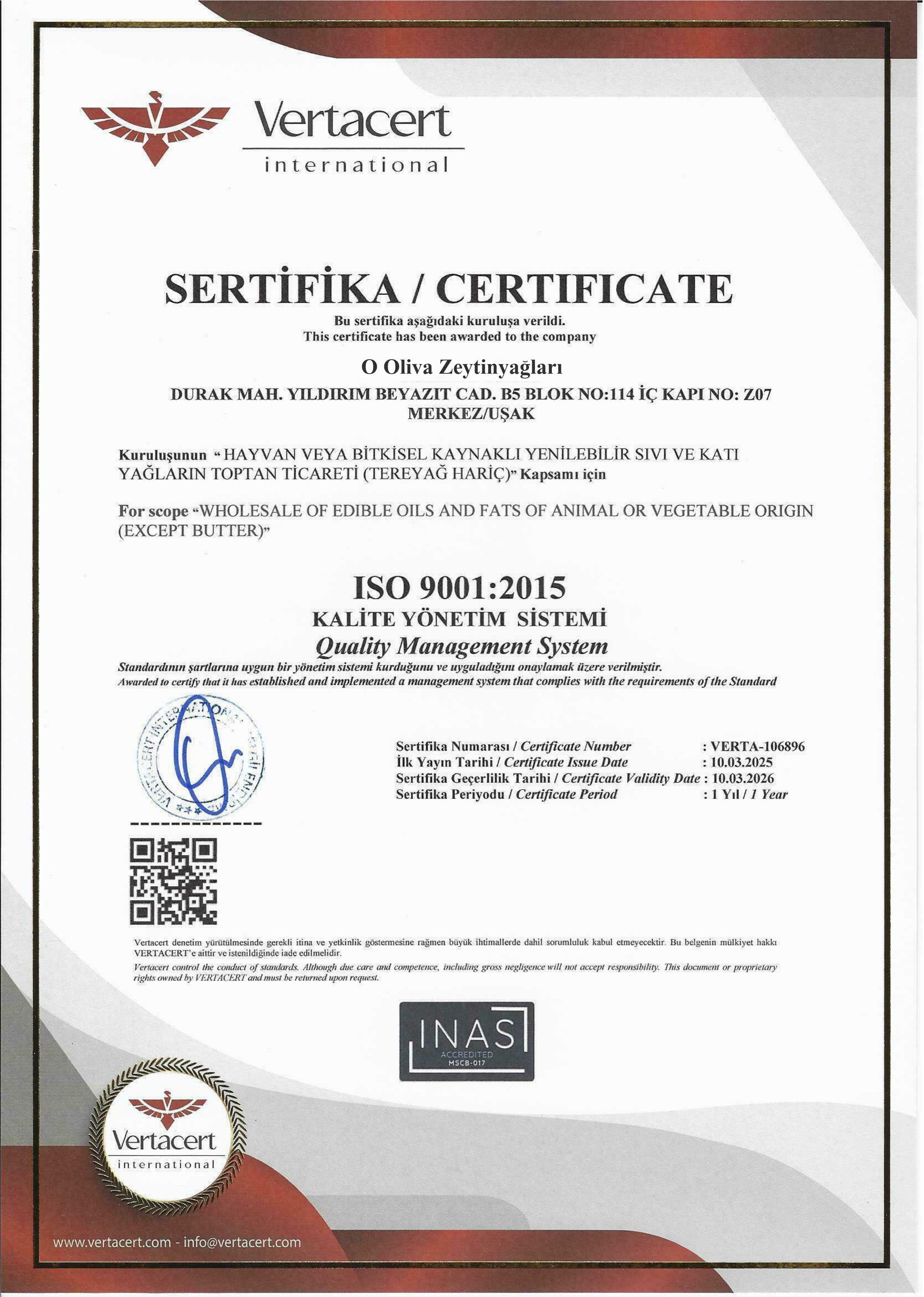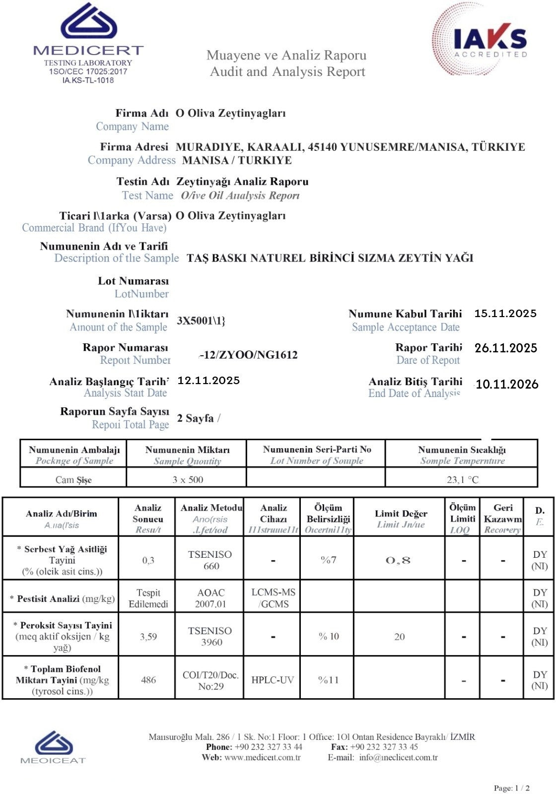Zeytinyağımızın Kalitesi Belgelerle Sabit